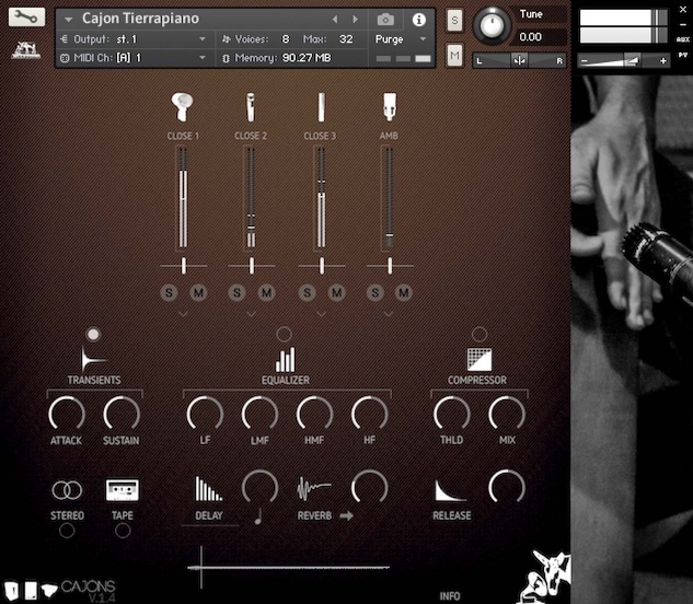 The Cajon library was recorded at the 3ml studio in BH, Brazil, by the great drummer Helton Lima, using a very dry room with 4 microphones. A Shure Beta52 was used for the Low, a Shure Sm57 for the edges, a Rode NT5 for Snare and a Neumann TLM 103 for the room. A Focusrite ISA 428 was used for the capture in the UAD Apollo.