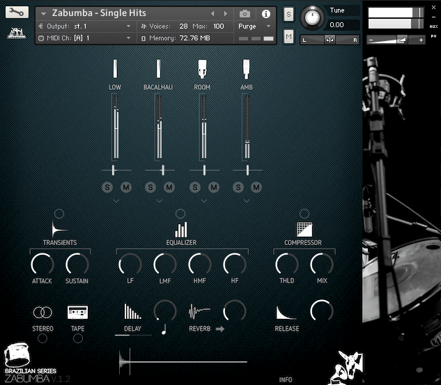 The Bacurinha emerged in the 90s, having a smaller size than the Repinique. Initially designed to follow the Timbal in the Axés and the Timbalada. Three .nki rhythms files with 3 different tempos and more than 180 loops, along with Single Hits and FX.